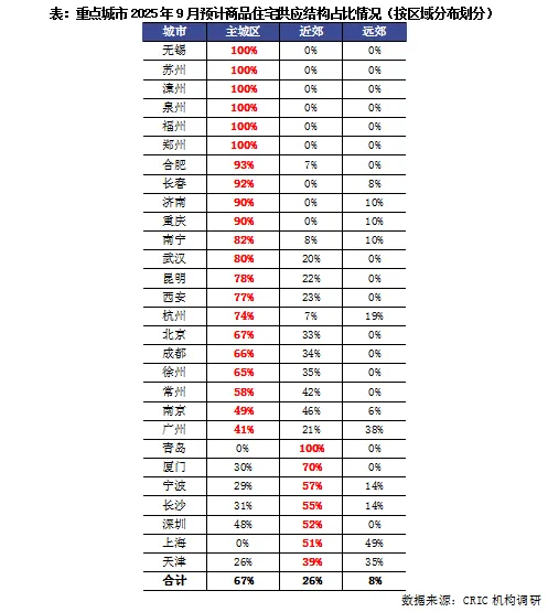 结构:7成以上城市以主城为供应主力 京沪深杭蓉等19城改善占比主导