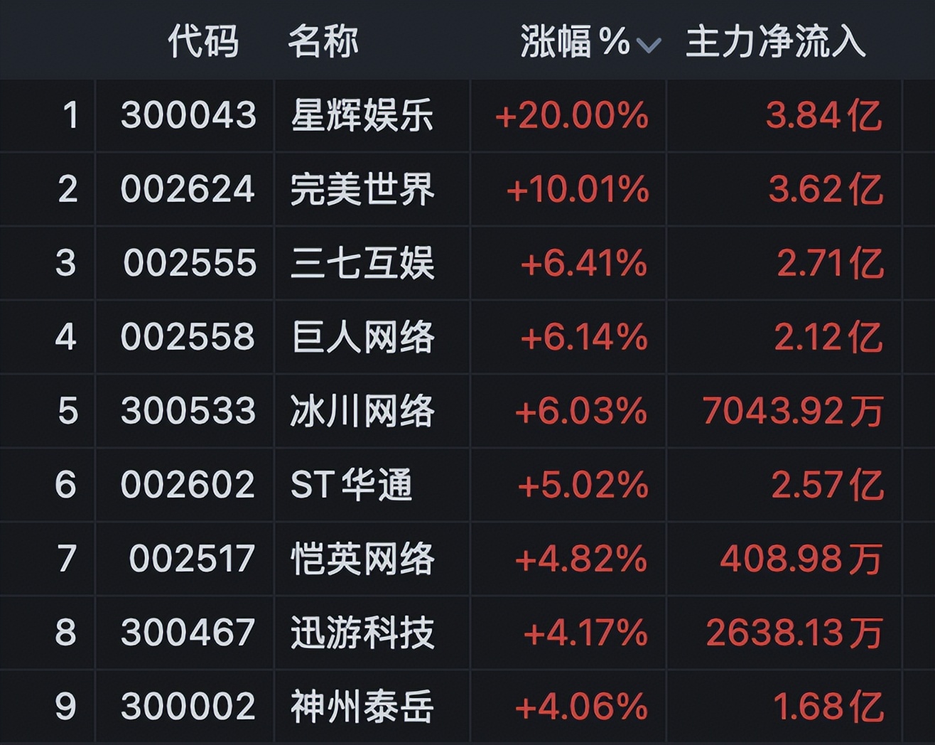 游戏股今日放量上攻,板块指数大涨逾4%,创8年多来新高。星辉娱乐20%涨停,创近6年半新高;完美世界亦强势封板,创2年新高;三七互娱、巨人网络、冰川网络等涨幅居前。