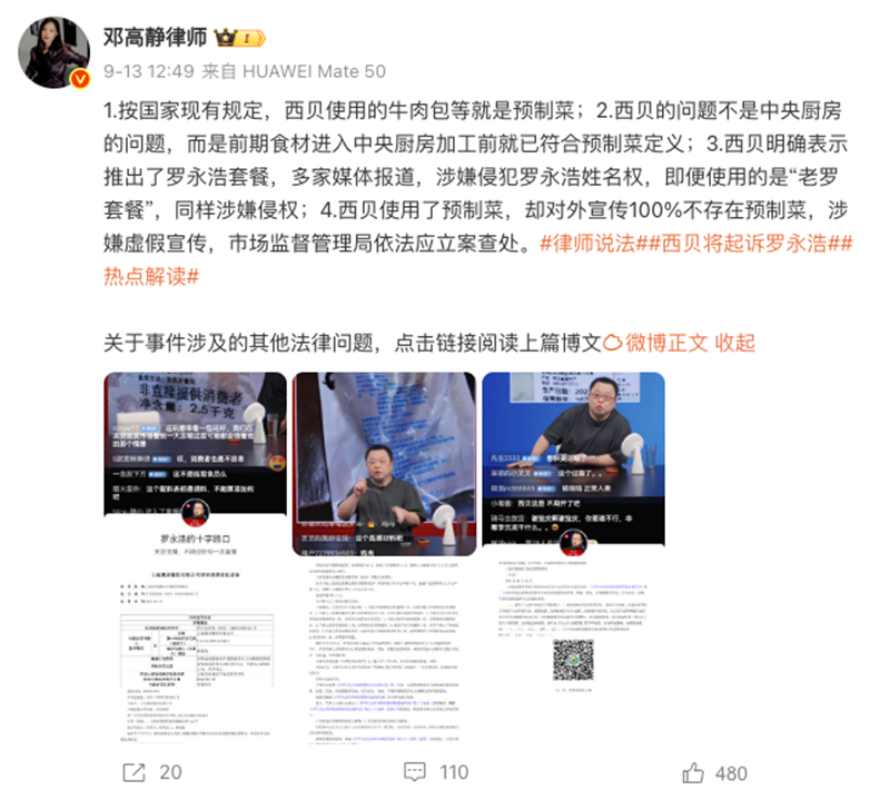 西贝在致歉信中的坦率与卑微,和此前坚决对抗罗永浩、否认预制菜的强硬姿态,形成了鲜明反差。