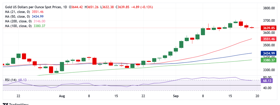 24K99讯 周五(9月19日)亚市尾盘,现货黄金维持日内反弹走势,目前金价位于3659美元/盎司附近,日内攀升近15美元。FXStreet高级分析师Dhwani Mehta撰文,对金价技术走势进行分析。