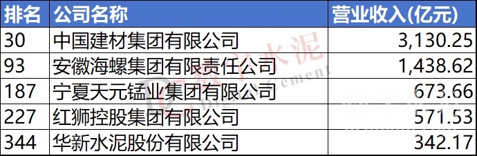 9月20日,中国企业联合会、中国企业家协会发布2025中国制造业企业500强榜单。其中,水泥行业五家企业上榜,分别是: