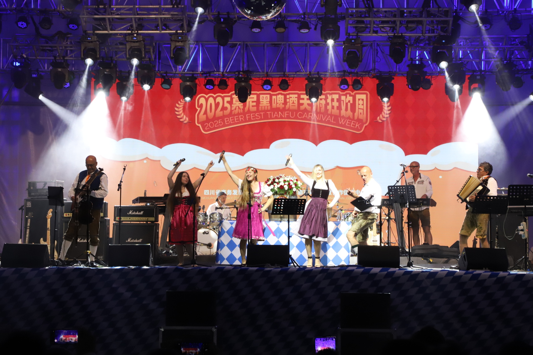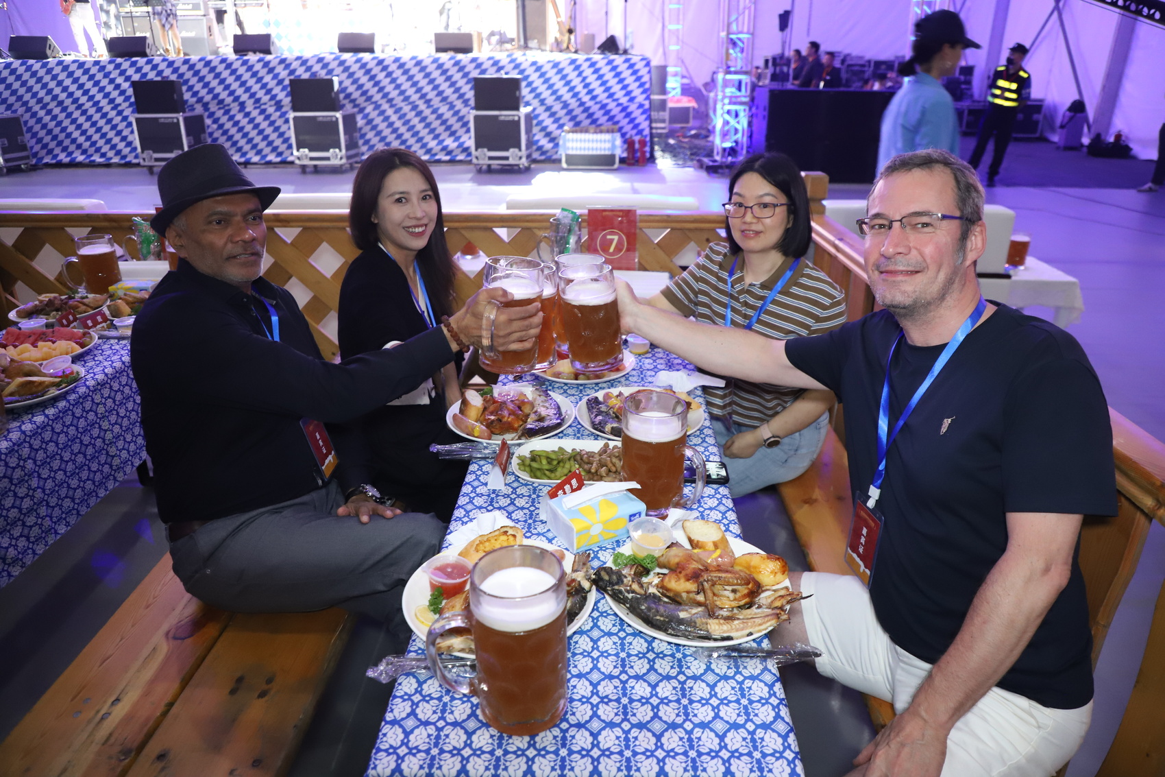 启动活动在热情洋溢的巴伐利亚歌舞中拉开序幕,来自德国的Hulapalu乐队唱起欢快的传统祝酒歌,欢迎来自世界各地的朋友们。随着“砰”的一声,黄铜龙头被敲入特制啤酒桶,狂欢周第一杯啤酒喷涌而出,瞬间点燃全场热情。