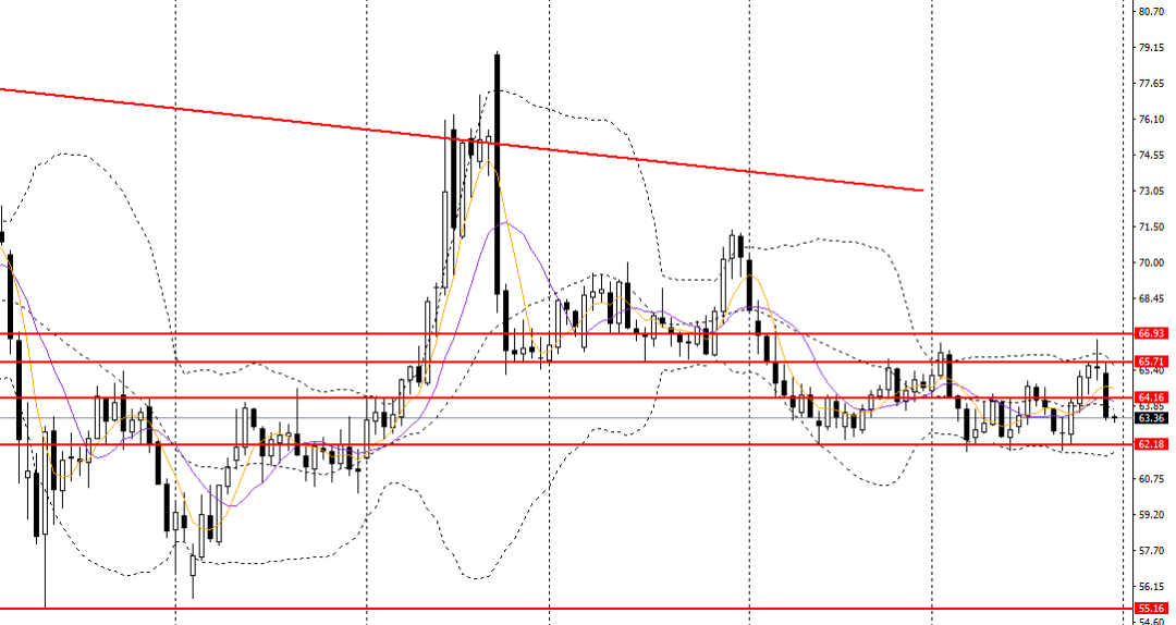 美原油深度跳水,日线呈黄昏星,承压于10日均线,日线RSI失守50,4小时下破65.70附近支撑,短线走势急速转弱,64附近承压可继续进空,后市不排除将再度回踩62。