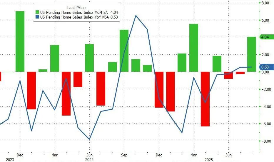 美国8月成屋签约销售指数环比上涨4%,同比上涨0.5%。