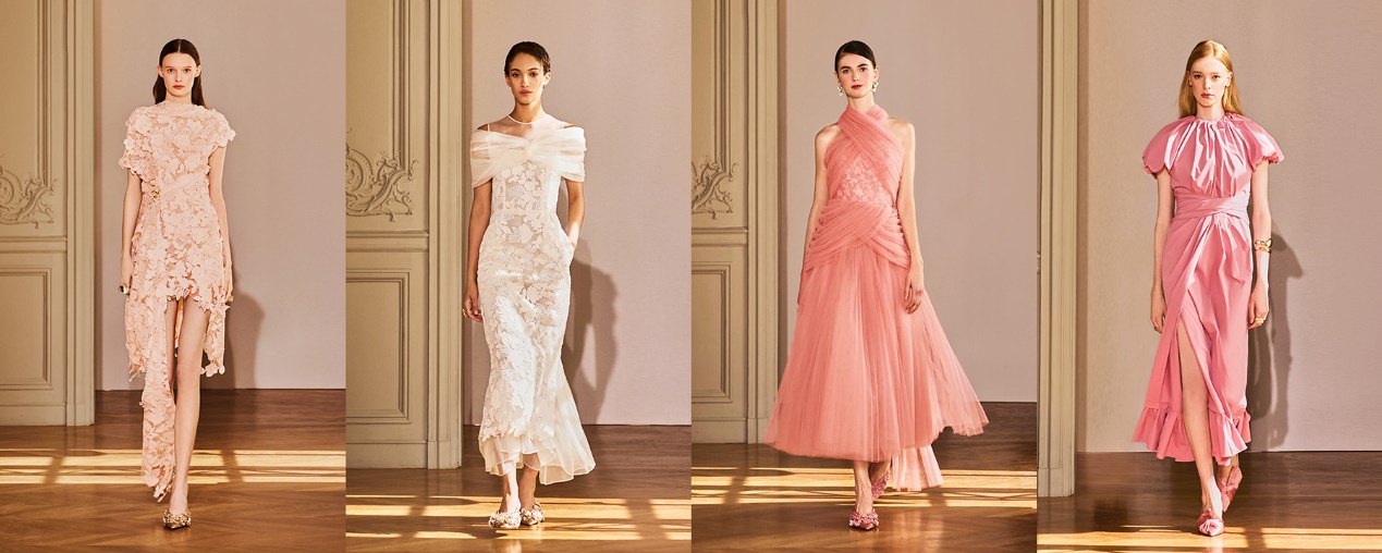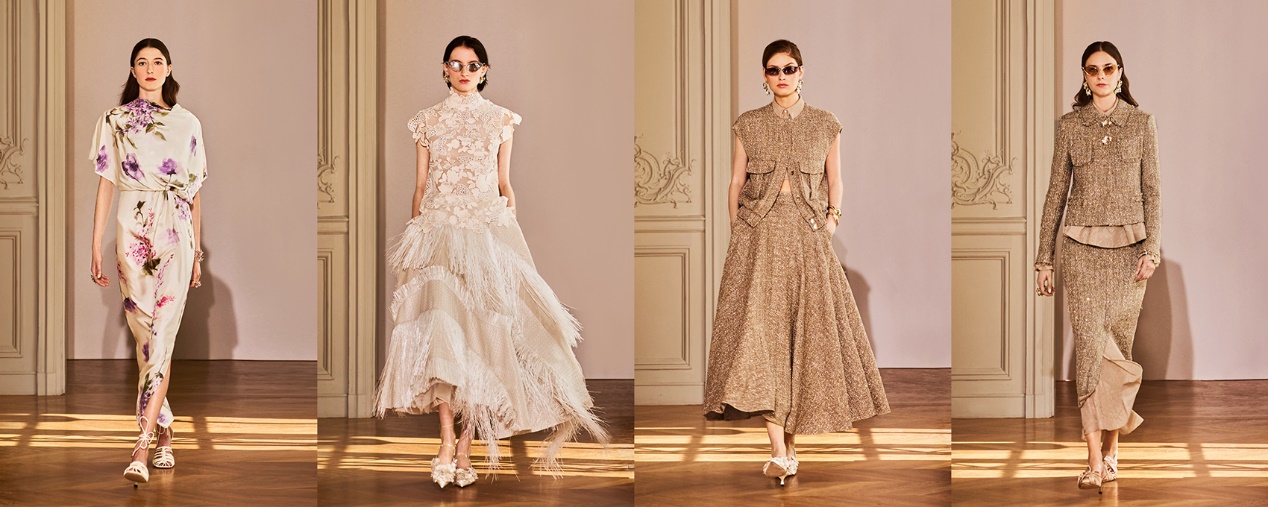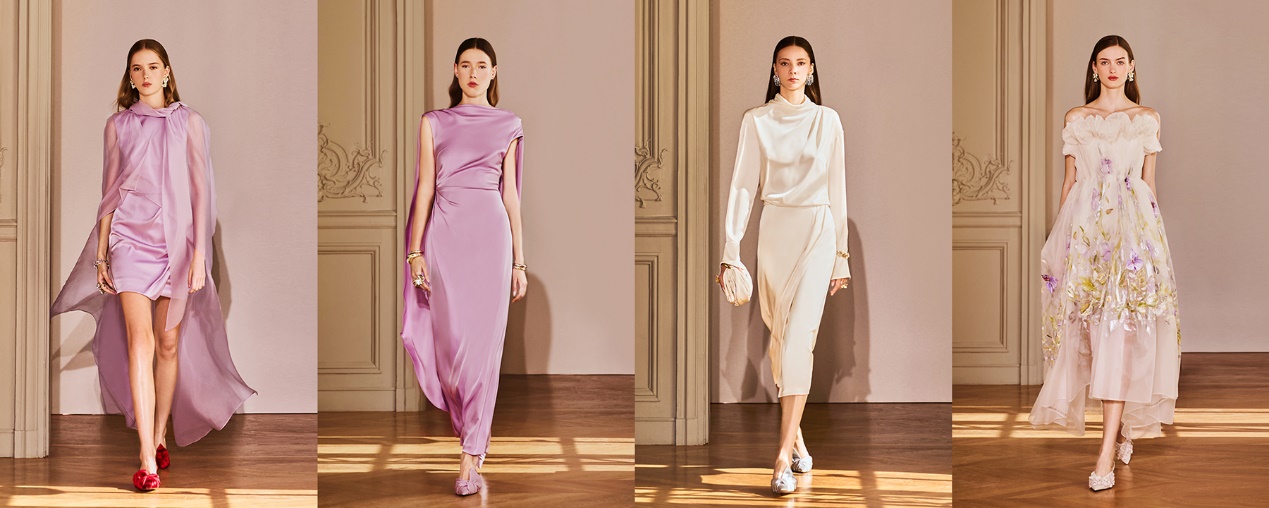 La Koradior延续抽象艺术的自由精神,将群像小花与大型花卉以刺绣语言重新诠释。细腻渐变的满铺小花、富于情感层次的大花图案,借助精致手工艺与年轻色彩,具象化地表达出浪漫且精致的女性韵味。廓形上巧妙融入及A型裙与直身连衣裙的对比,搭配花纱面料、泡泡纱与都市感外套,于实穿之中传递出高级场合感与不失柔美的现代气息。