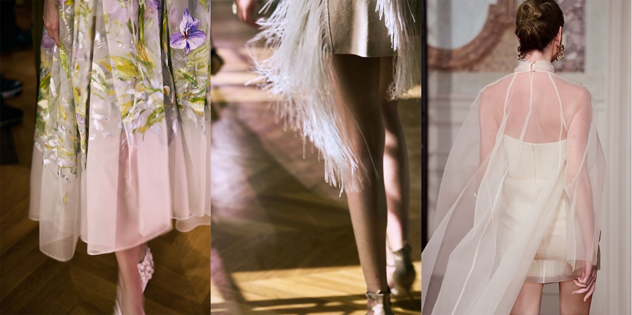 匠心精神下的「雕塑之轻」、「花绘之意」、「光影之诗」三部曲,章节式呈现La Koradior高定艺术的演进历程。来自意大利的Albino Damato作为这次的巴黎大秀创意顾问,融汇巴黎风格的浪漫与意大利的精湛工艺,从当代艺术与建筑结构中汲取灵感,将理性与感性凝练为贯穿华服与身体之间的隽永内力。