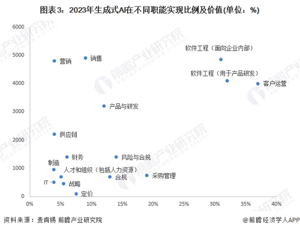 生成式AI能为绝大多数智能领域创造价值,据麦肯锡研究,生成式AI技术在客户运营、营销销售、软件工程等四大领域创造着75%的行业价值,其应用渗透率较高。