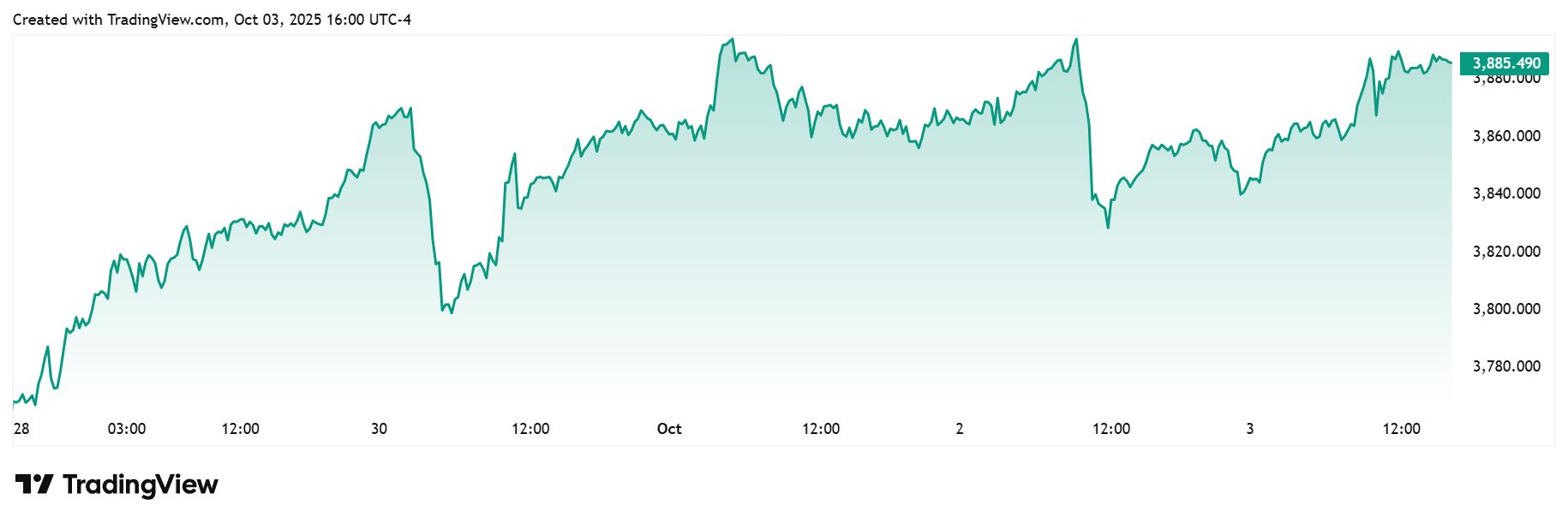 本周,美国政府停摆成为又一重大导火索,促使资金进一步脱离美元,逃向硬资产,推动黄金价格一路上攻,几近触及 3,900 美元/盎司 的心理关口。