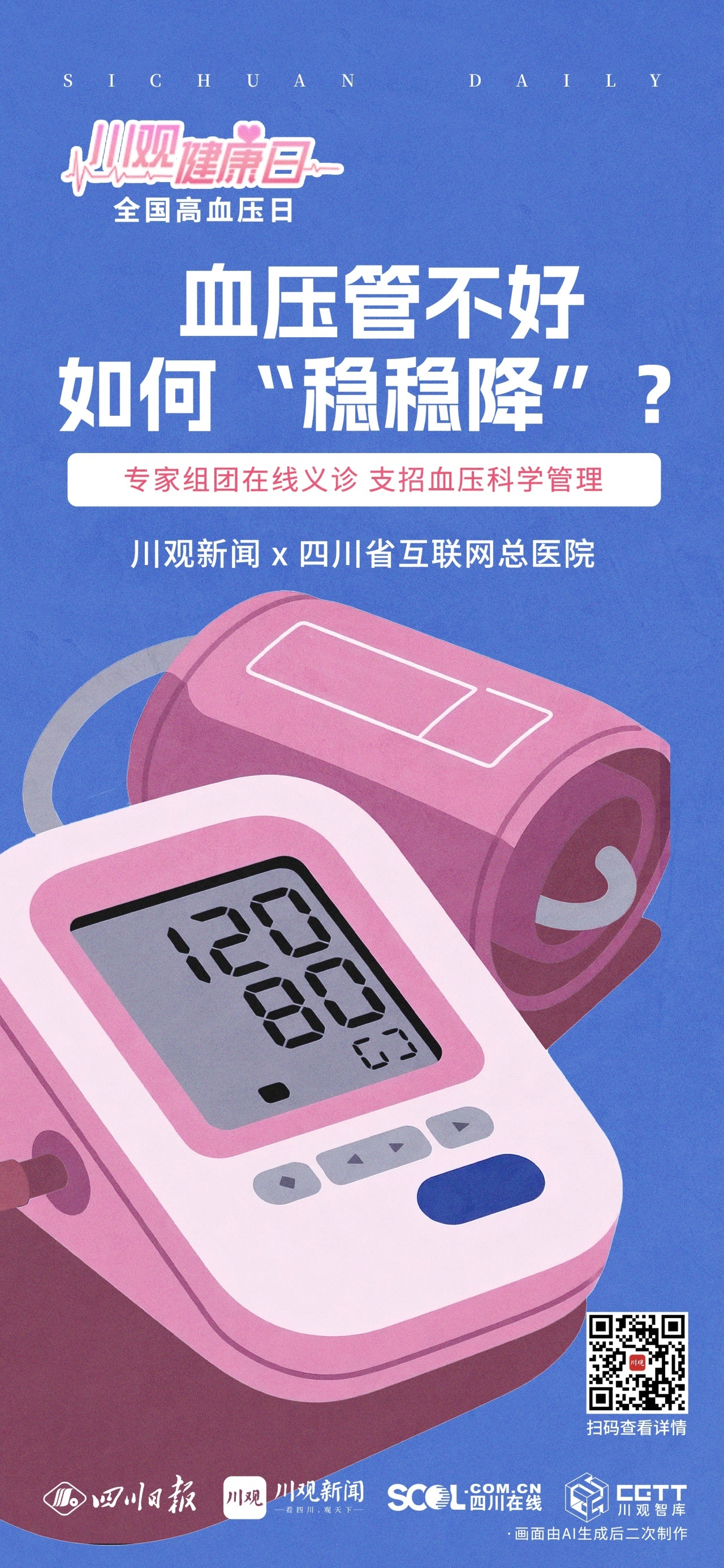2025年10月8日是第28个全国高血压日,10月川观健康日,川观新闻携手四川省互联网总医院开展线上免费义诊活动,送出50个线上免费义诊名额。四川大学华西医院、四川护理职业学院附属医院(四川省第三人民医院)、四川省中西医结合医院、四川省第二中医医院医生为你在线答疑。