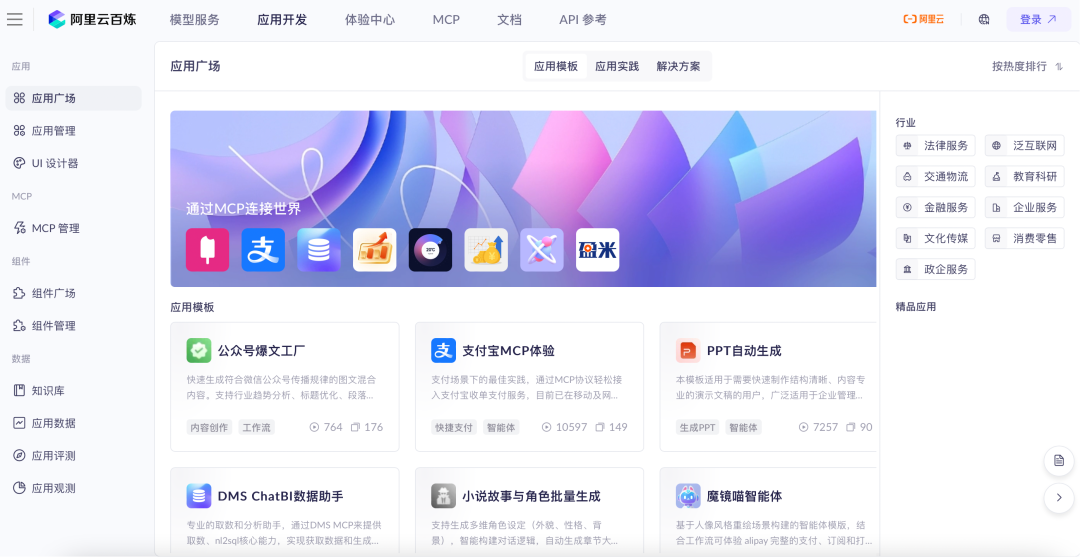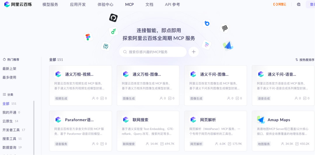 平台同步上线高德、无影等50多款阿里巴巴和三方MCP服务,满足不同场景的智能体应用开发需求。