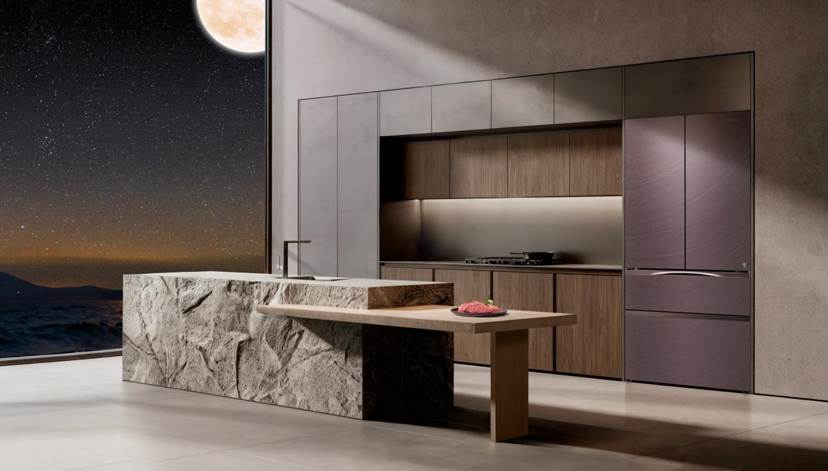 当下,品质用户对家电的需求已超越基础功能,更追求其文化内涵、舒适体验与审美共鸣。占据厨房C位的冰箱,需“内外兼修”,集品位、美学、健康与便捷于一身。基于此洞察,海信为新品打造了“海升明月·万象璀璨”的星璟面板。该设计融汇东方美学神韵,交织沧海波光与月色,以独特的明月PI曲线勾勒海上月影,呈现“明月映海,万象璀璨”的诗意意境,为现代厨居注入通透雅致的气韵。面板历经七层顶级工艺锻造,触感温润且耐磨,并精雕“回纹”、“云纹”等经典吉祥纹样,细节之处尽显匠心。