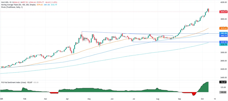 FXStreet分析师Christian Borjon Valencia指出,随着交易员获利了结和美元走强,金价暴跌至4000美元/盎司以下,日内最低触及3944美元/盎司。以色列和哈马斯之间的停火乐观情绪助长获利了结,而中国交易员的回归则加剧市场波动。