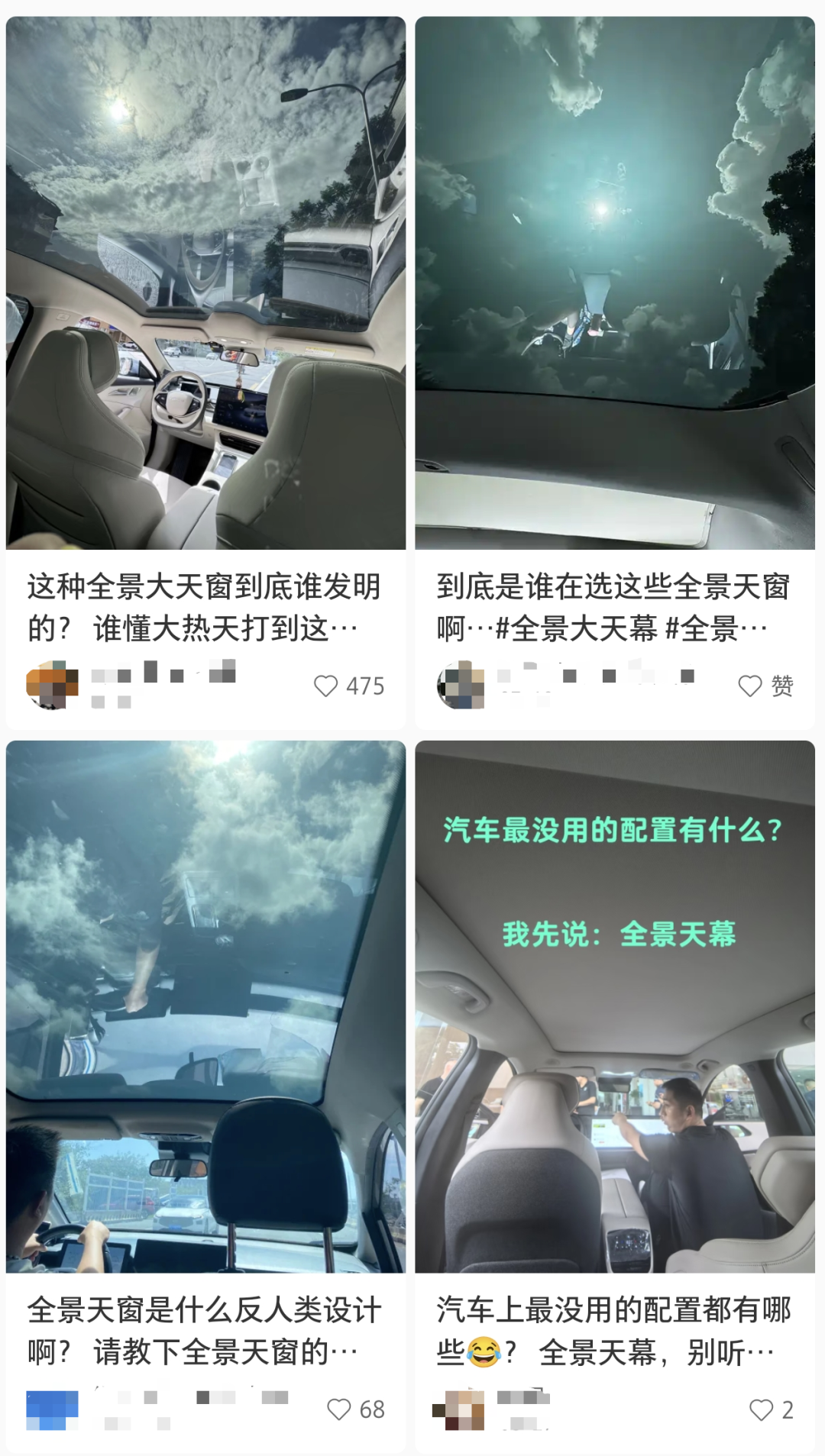 有不少新能源车主称,现在提车后第一件事就是下单全景天幕遮阳帘,甚至比手机支架更早下单。
