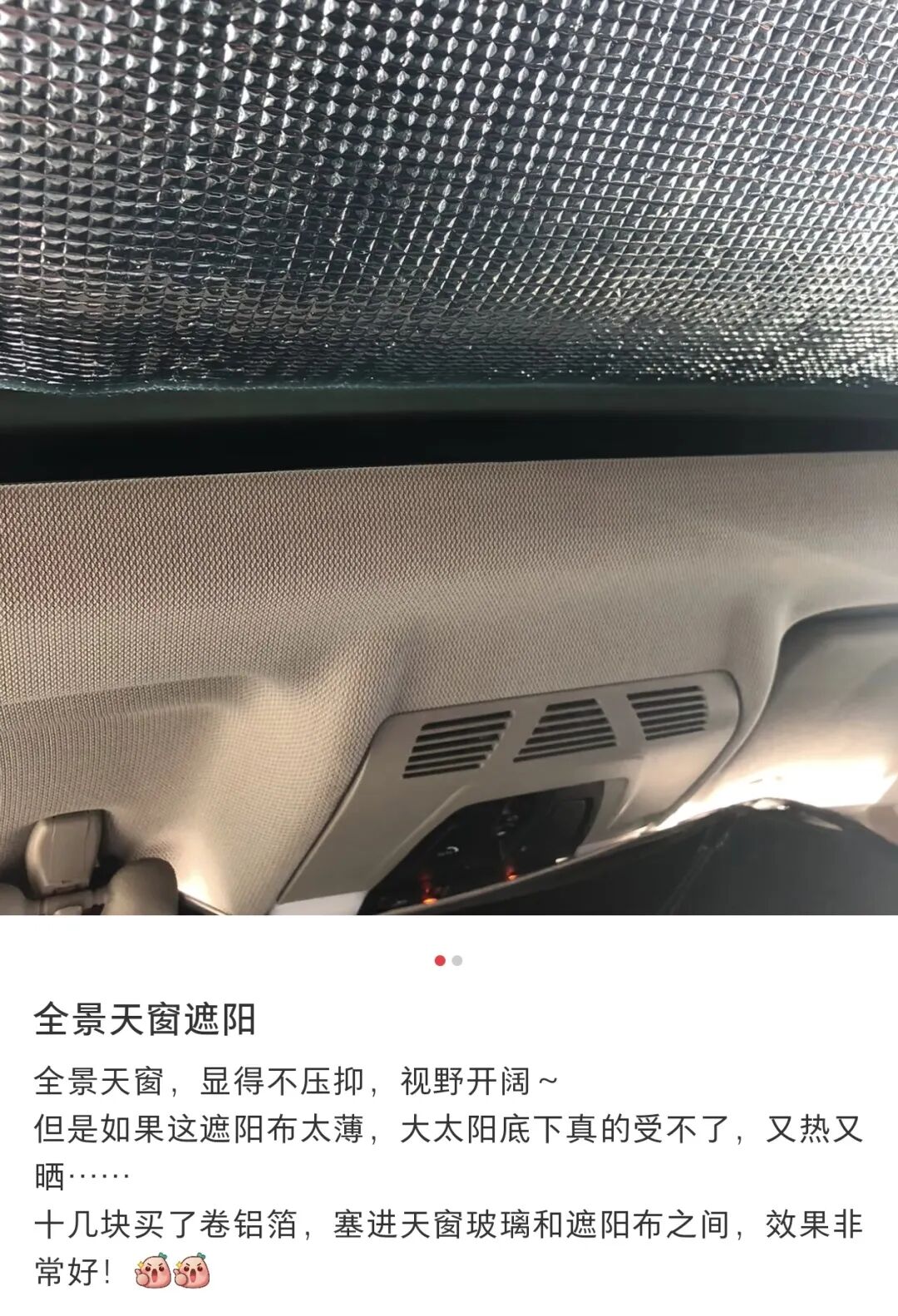 ▲社交平台上网友们分享用铝箔棉遮挡全景天幕的方案