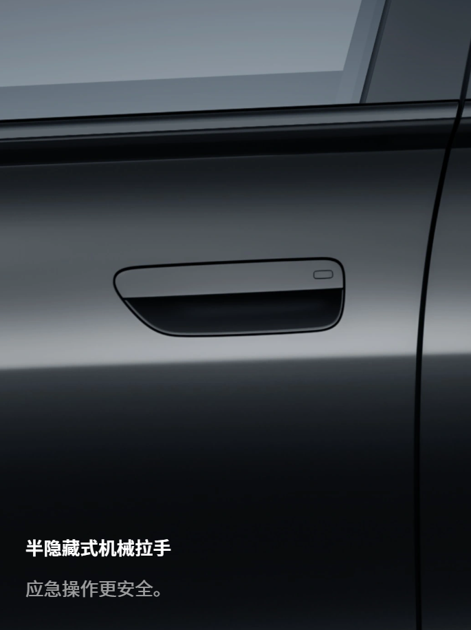 其实近两年已有不少车企开始回归「传统」。比亚迪海豹、问界M8等采用半隐藏式把手,每个把手都配有物理解锁控制器,保证全车断电后仍可以使用机械结构拉开车门。