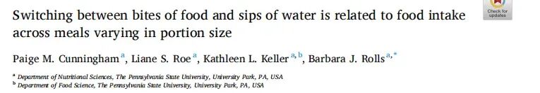 CUNNINGHAM PM, ROE LS, KELLER KL,et al. Switching between bites of food and sips of water is related to food intake across meals varying in portion size[J]. Appetite. 2023 Mar 1;182:106443. DOI: 10.1016/j.appet.2022.106443.