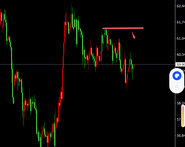 1,60.4-60.6空,止损0.4,目标59.6-59.1