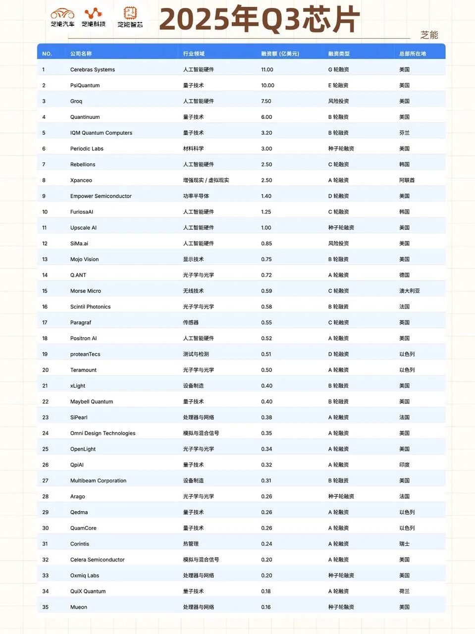 原文标题 : 全球2025年Q3芯片融资观察:AI 芯片主导融资节奏