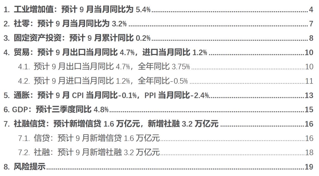 1、预计9月出口当月同比4.7%,全年同比3.75%