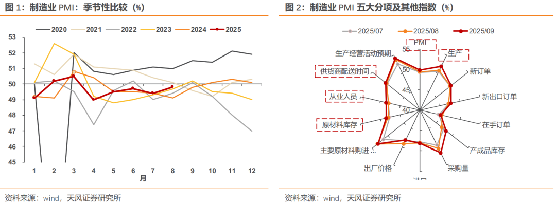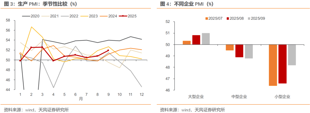 此外,经济运行的结构性分化仍较明显。9月大型企业PMI指数升至51.0%,位于扩张区间,而中型和小型企业PMI均处于收缩区间,中小型企业景气度仍偏低。
