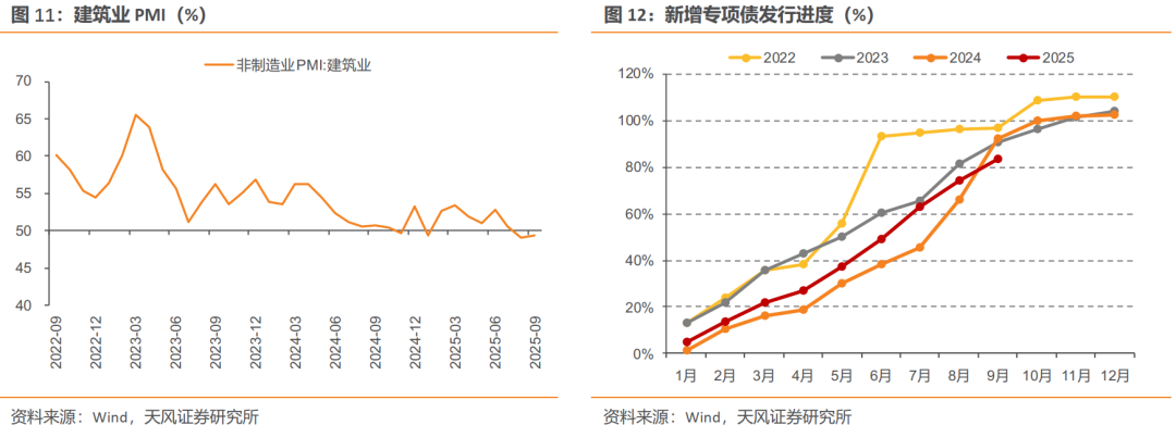 此外,9月新增专项债发行进度有所减慢,对基建投资的支撑力度或减弱。