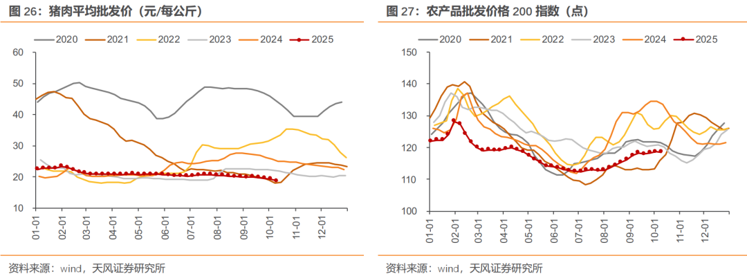 CPI方面,从食品价格来看,9月猪肉价格维持震荡回落,农产品批发价格有所回升。