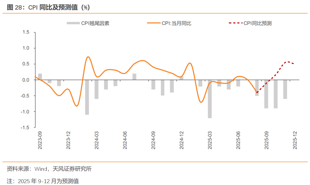 综合来看, 9月CPI环比我们按接近0.2%测算,对应计算CPI同比小幅为负,预计为-0.1%,三季度CPI同比或为全年低点,此外,四季度 CPI同比约0.4%。