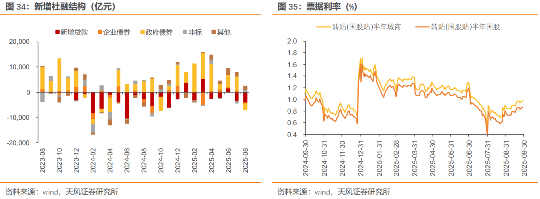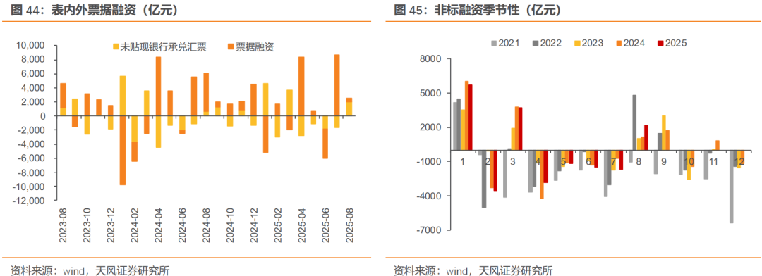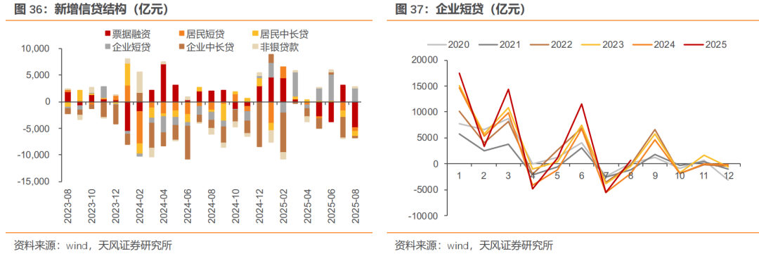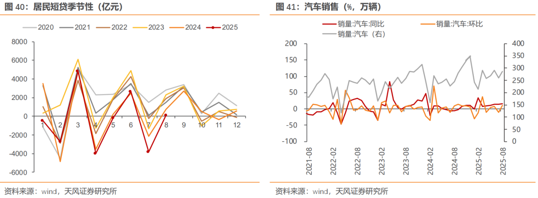 居民短贷来看,一方面,其通常呈现明显季节性变化,9月往往环比回升;另一方面,在消费贷财政贴息等政策引导下,消费增长或受到一定带动作用;此外,考虑到去年基数不高,预计今年9月居民短贷同比多增。