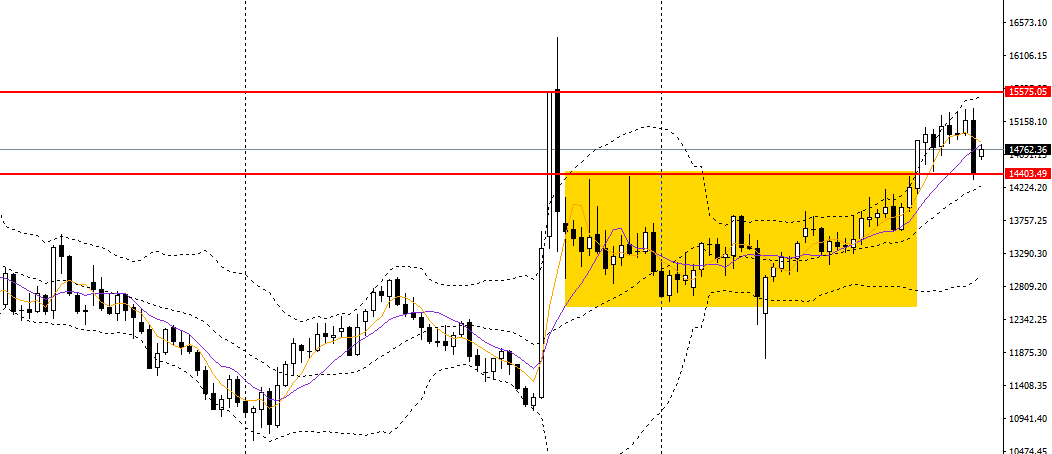 A50上周收长阴柱,下破10周均线,RSI跌至50附近,波段仍处于震荡偏强格局。周五大幅下挫,下破日线布林下轨,受5日均线压制,4小时下破14800附近支撑,打破此前震荡区间下沿,14800下方可维持高空思路。