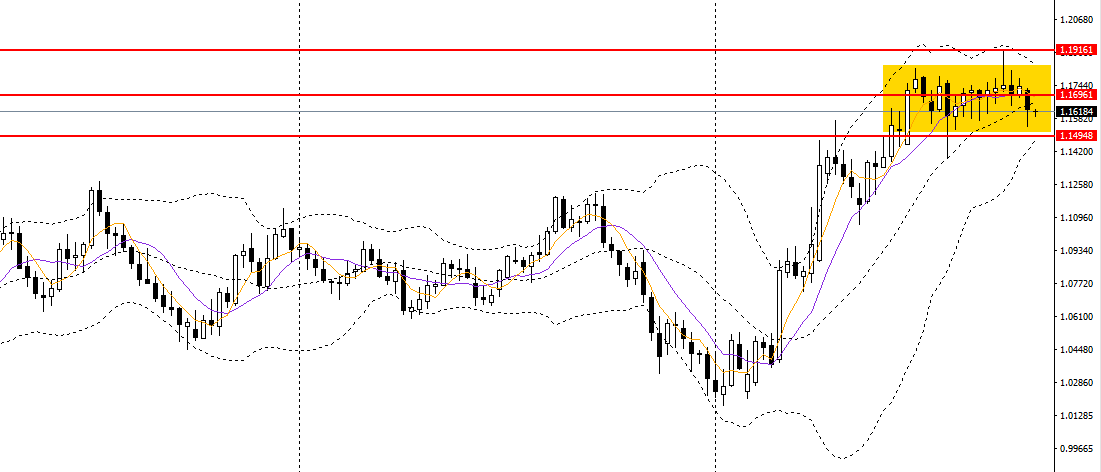 欧美上周大幅回落,下破周线布林中轨,但整体仍未摆脱区间震荡格局。周五收长阳柱,上探5日均线,日线RSI位于50下方,4小时呈头肩底,如于1.16附近企稳可继续进多,上方首先关注1.1650附近阻力。