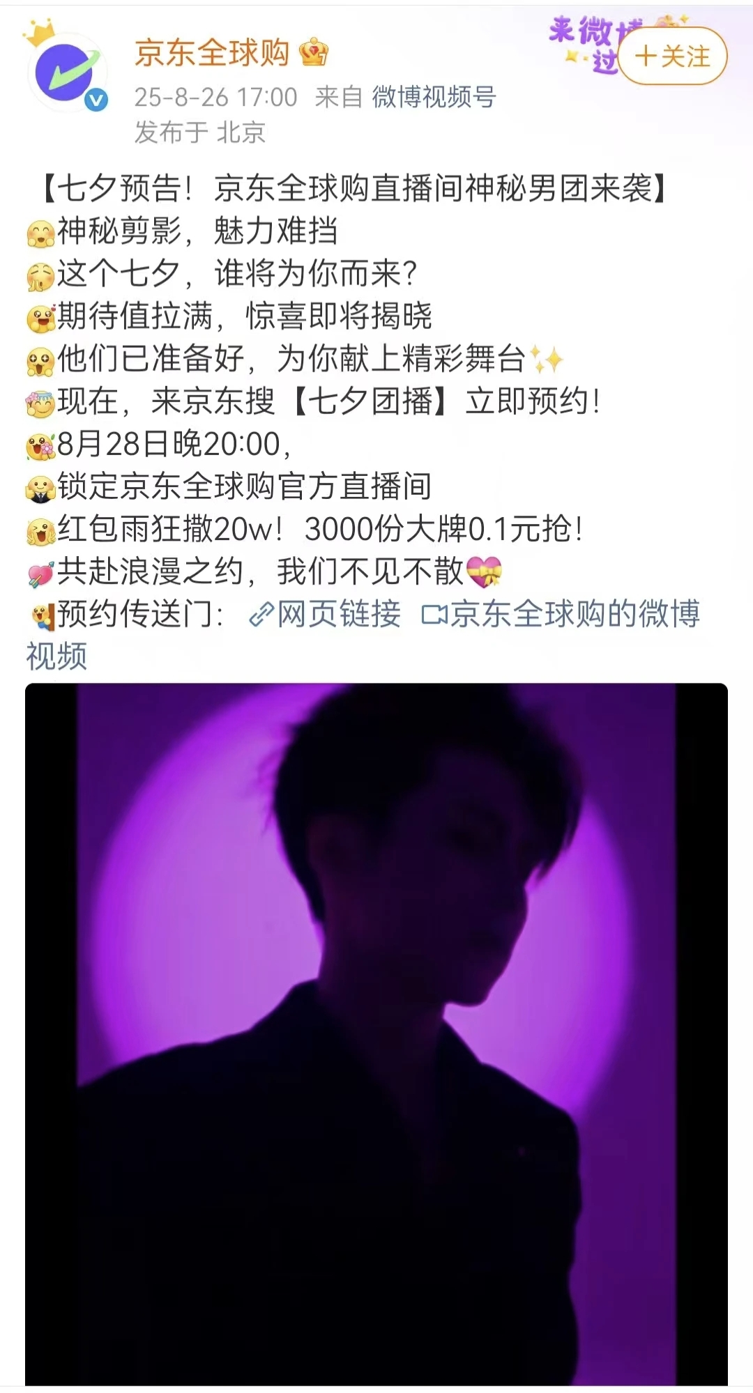 又如麻辣王子、香飘飘、绝味鸭脖、瑞幸咖啡等品牌也携手男团、女团,通过团播形式,为自家直播间拉人气,提升热度,从而实现转化。值得一提的是,今年七夕,京东全球购也通过男团、女团打PK的形式,试水团播。