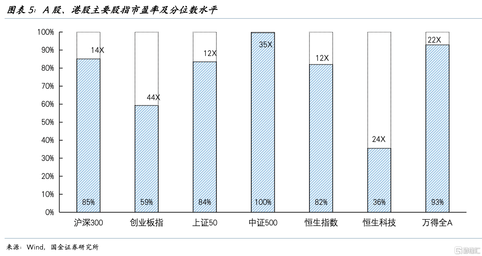 中国资产方面,A股、港股各指数估值整体处于合理区间:沪深300、创业板指、恒生指数、恒生科技的市盈率分别位于近五年85%、59%、82%、36%分位数。