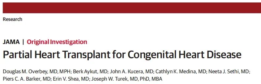 OVERBEY DM, AYKUT B, KUCERA JA, et al. Partial heart transplant for congenital heart disease[J]. JAMA, 2025. DOI: 10.1001/jama.2025.13580