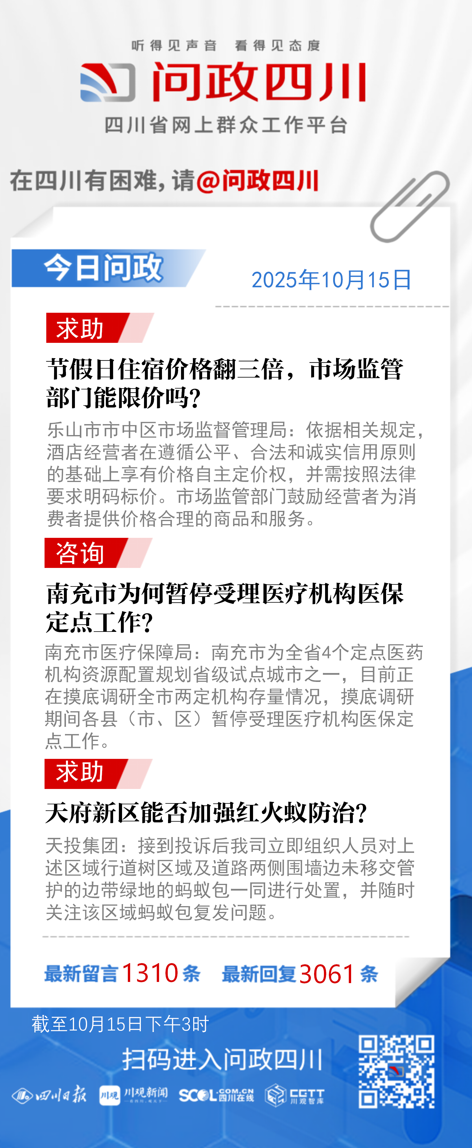 问政四川网友提问:平时一百出头的住宿,到节假日就涨几百块甚至上千,符合市场价格调整浮动范围吗?相关市场监督管理部门能否介入限价?