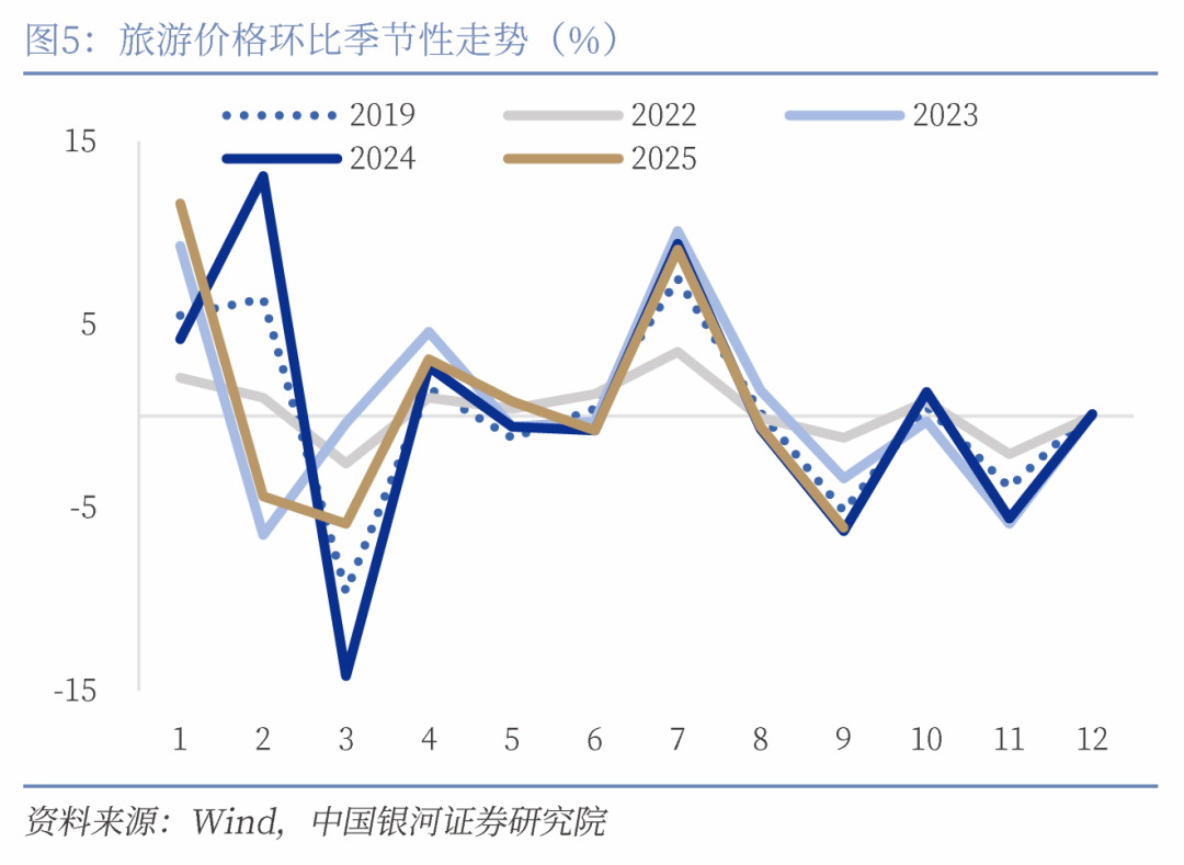第二、旅游和能源价格回落对非食品项带来一定拖累,部分消费品价格上涨。9月非食品价格环比下降0.1%,其中旅游和能源项价格均低于季节性。旅游价格主要受到暑期结束和中秋节较往年错月叠加影响,环比下降6.1%,降幅高于过去五年同期均值水平(-3.0%)。