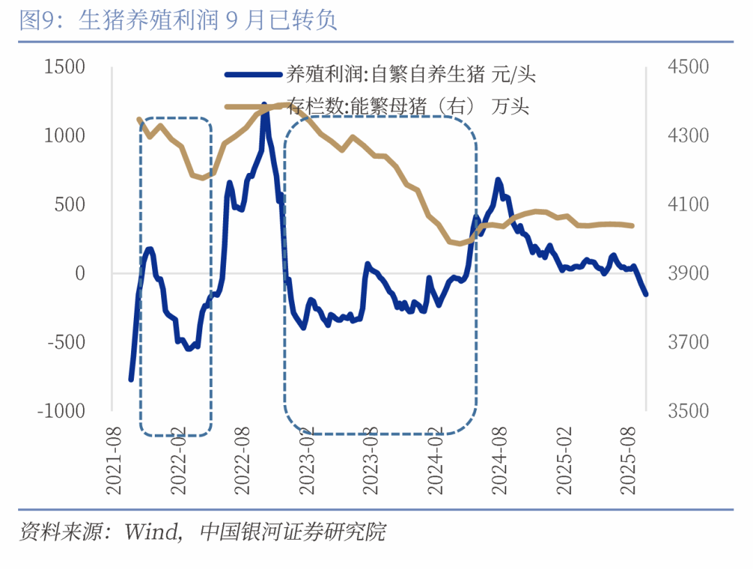 本月CPI环比小幅改善,同比略有收窄,翘尾因素改善或使得10月CPI继续回升。展望后市,一是关注猪肉产能的去化进度。9月16日,国家发展和改革委员会联合农业农村部在北京召开生猪产能调控企业座谈会,会议针对当前生猪市场供应过剩、价格持续低迷的现状,部署了一系列精准调控措施,明确通过 "减产能、严管控、建机制" 组合拳推动行业供需平衡。目前养猪利润已在9月底转负,尽管养猪企业正加速出栏去化产能,但淘汰母猪将是长期缓慢的过程,猪价短期内还将承压。二是供应过剩与需求增长乏力构成主要挑战,油价或承压。三是治理企业低价无序竞争力度加大有助PPI回升,但向CPI传导效果仍有待观察。四是消费内生动能偏弱,核心CPI修复空间有限。