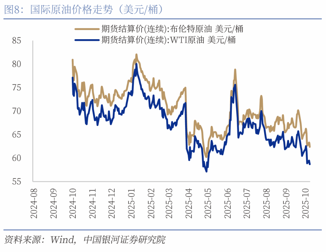 原油方面,国际油价下行带动国内石油开采、精炼石油产品制造价格分别下降2.7%和1.5%。