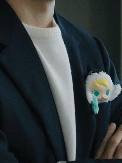 摄影师在影棚里闪转腾挪。他思忖一会儿,走近王宁,让后者西装的胸前口袋里探出BABY MOLLY的脑袋。MOLLY是中国香港艺术家王信明(Kenny Wong )的作品,也是泡泡玛特签约的第一个IP。王宁对她深有感情:她是公司转型、崛起的开端。