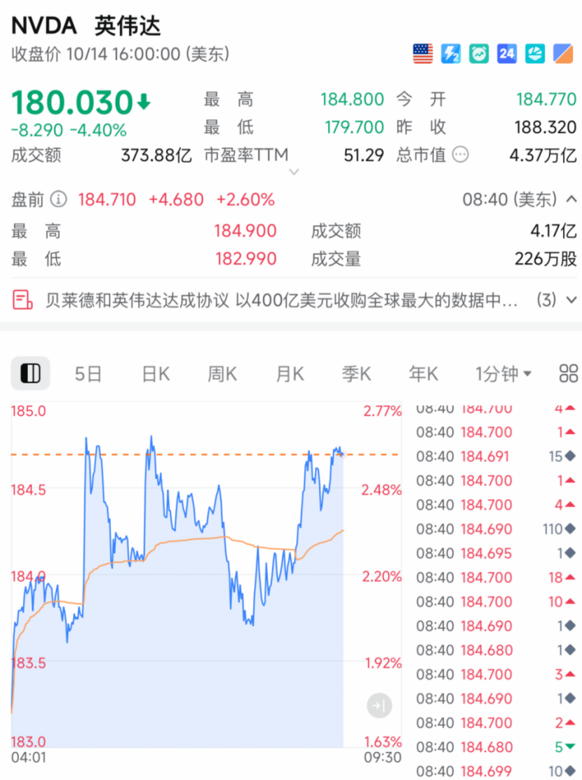 据最新报道,英伟达、xAI、微软以及贝莱德等公司组成的投资财团将以400亿美元(约合人民币2850亿元)收购Aligned数据中心公司。与此同时,汇丰银行将英伟达的目标价格大幅上调至320美元。若实现该目标,英伟达总市值将升至7.78万亿美元。