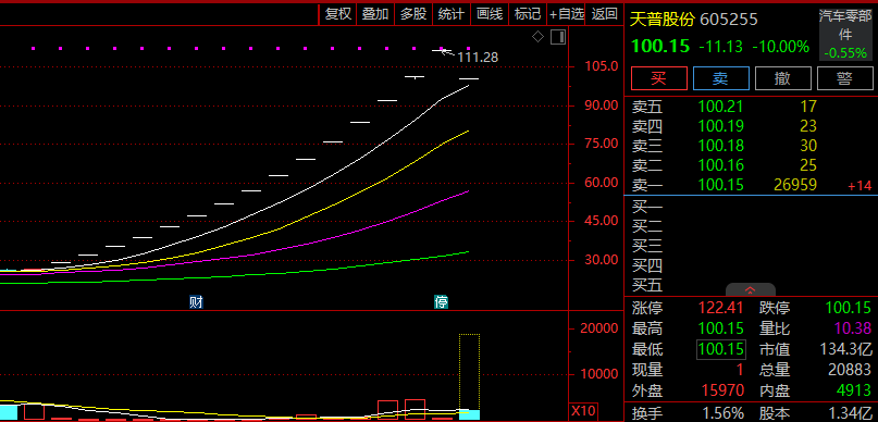 天普股份(605255)复牌一字跌停。此前,天普股份股票价格于8月22日到9月23日连续15个交易日涨停,累计上涨317.72%。