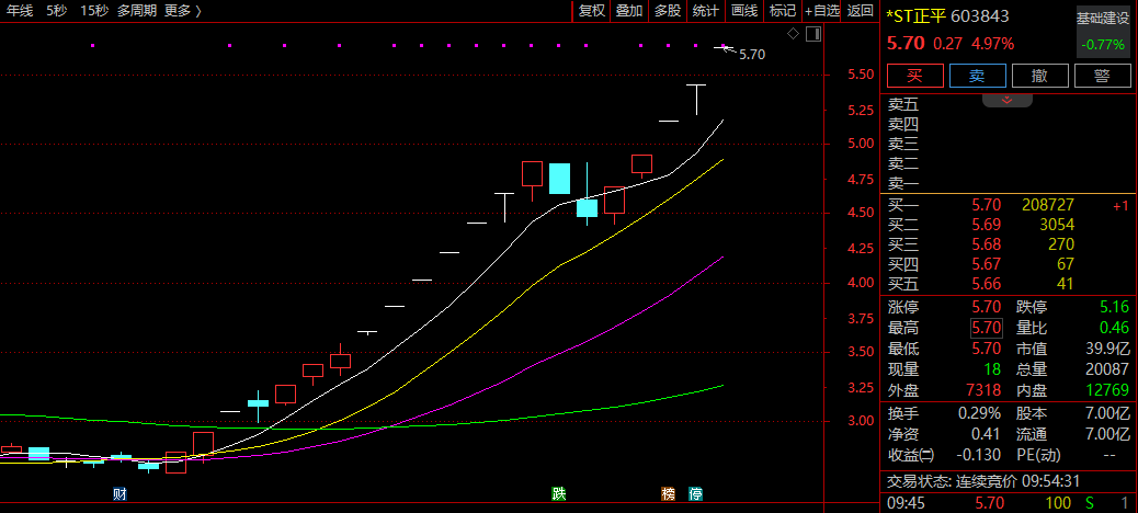 而另一只牛股*ST正平(603843)则在今日涨停。*ST正平自9月1日至9月30日累计涨幅为101.86%,其间15天涨停