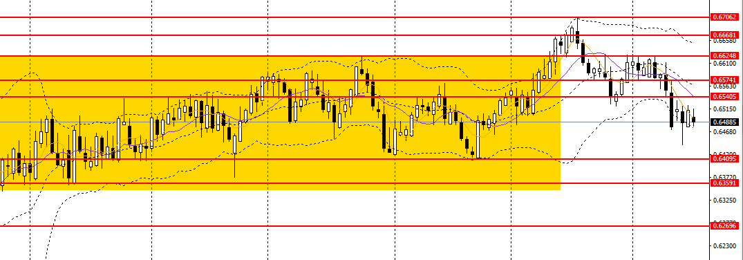 澳美止跌反弹,仍受5日均线压制,4小时于0.6520附近遇阻,整体趋势仍偏弱,如承压于0.65下方,空单可继续持有,短线可下看至0.6440附近。