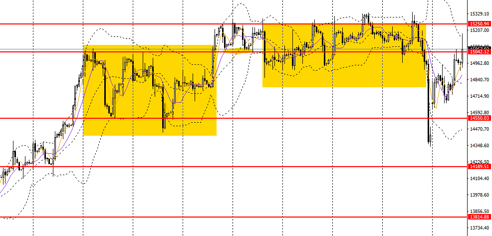 A50强势走高,站上10日均线,日线RSI升至50附近,4小时上破15000关口,短线趋势转强,多单可继续持有,后市预计将再度挑战15300。