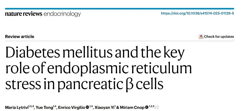 Lytrivi, M., Tong, Y., Virgilio, E.et al.Diabetes mellitus and the key role of endoplasmic reticulum stress in pancreatic β cells[J].Nat Rev Endocrinol(2025). https://doi.org/10.1038/s41574-025-01129-5