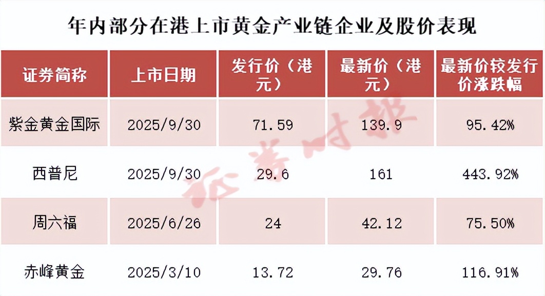 记者梳理发现,今年以来,包括紫金黄金国际、周六福、赤峰黄金等在内的多家黄金产业链相关企业已在港股挂牌上市,还有多家公司正积极推动赴港上市事宜。