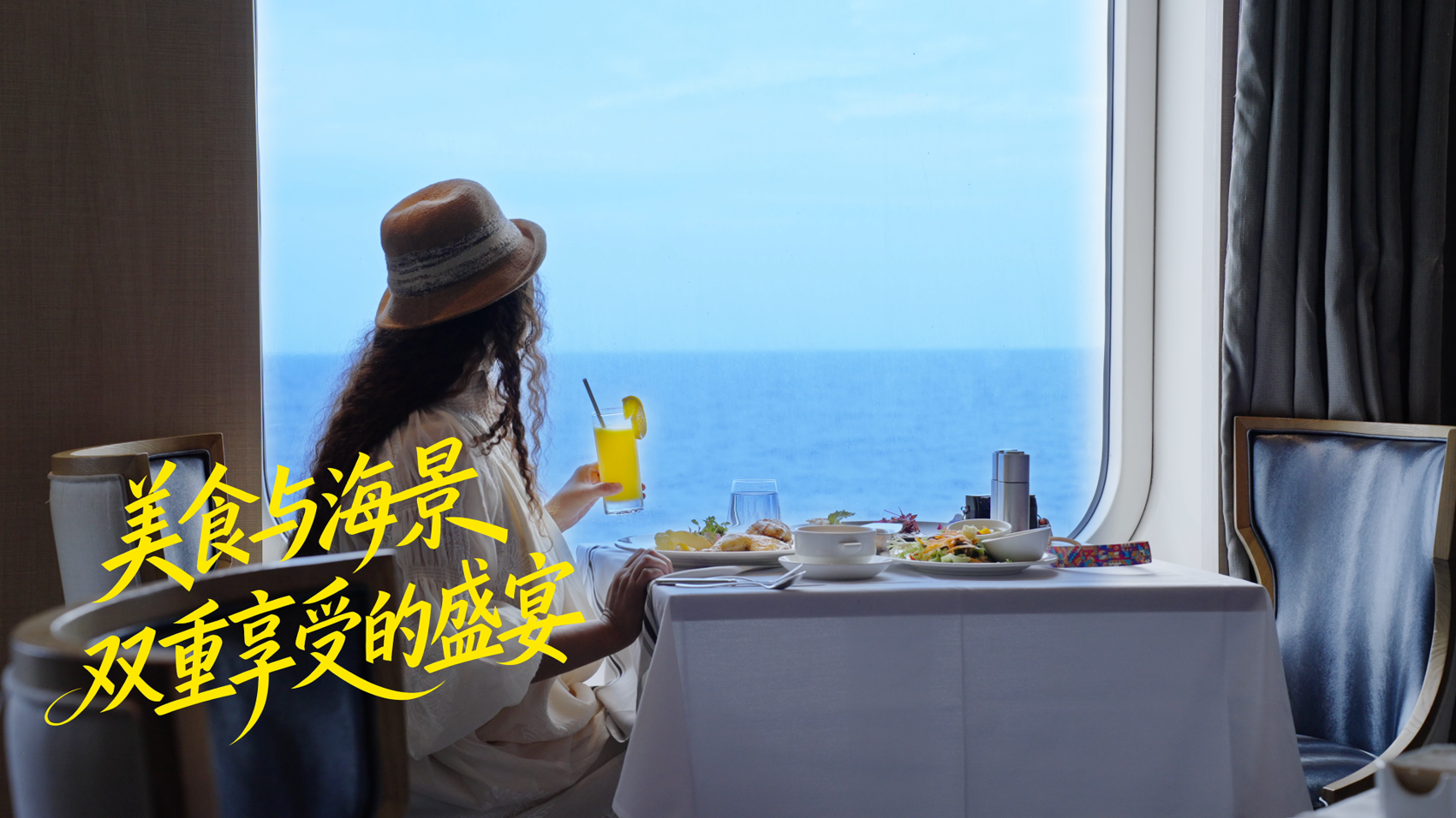 看见餐厅里美食与窗外的波光粼粼交相辉映;