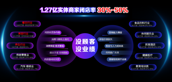 当前,实体商业面临严峻挑战。数据显示,截至2025年5月,全国实体商户数量已达1.27亿家,但闭店率高达30%至50%。消费行为向线上迁移、同质化竞争加剧、传统营销效果减弱等问题,成为制约实体门店发展的关键因素。