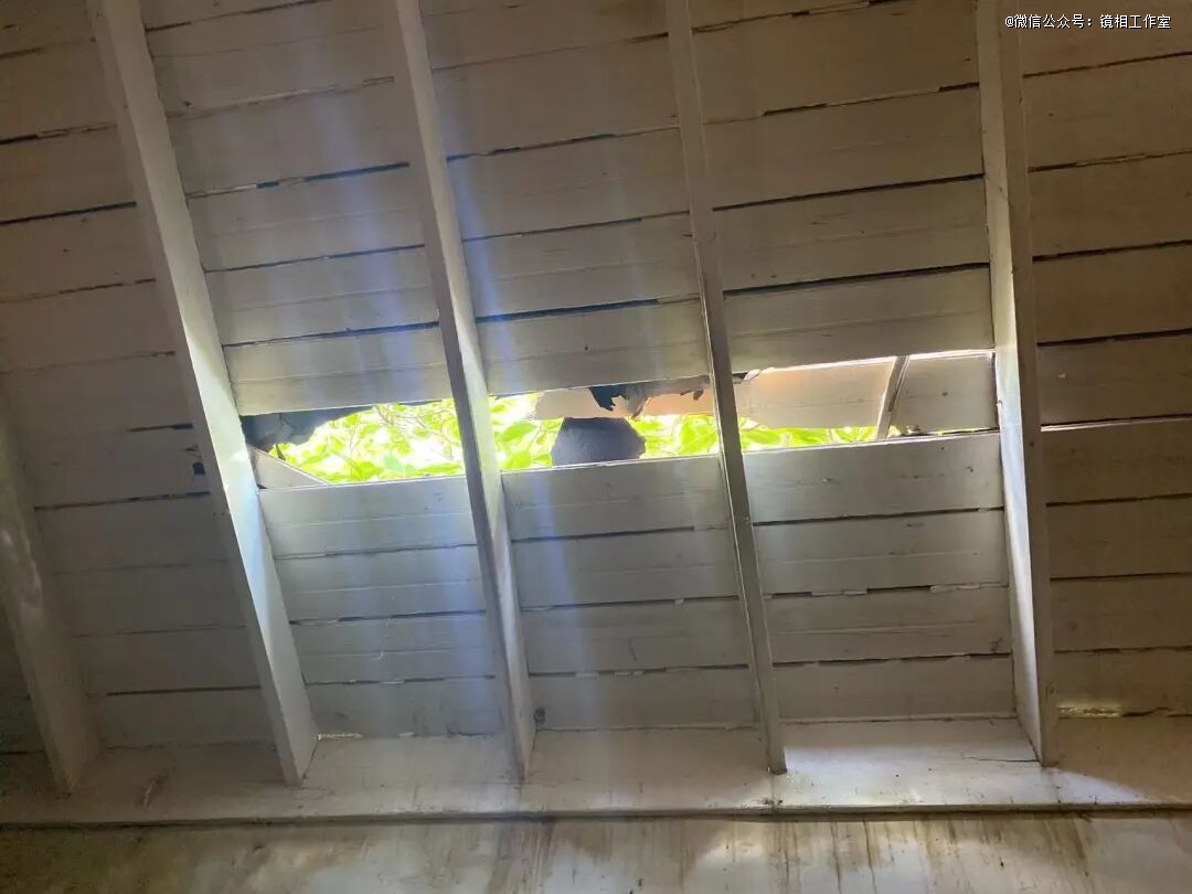 ● 李明达发现超市仓库天花板被撬开,其不得不在房顶加装铁板。图源:李明达