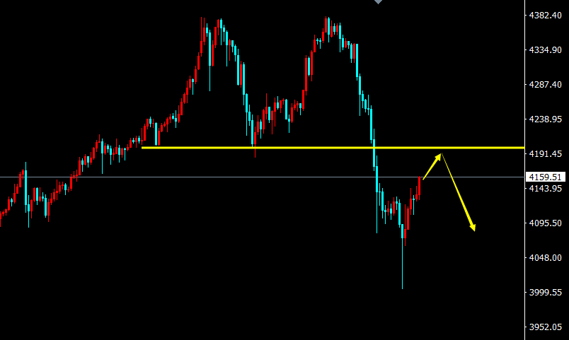 黄金,昨日终于迎来了期盼已久的旷世跌幅,自前一日凌晨最高触及到了4381附近后开启了一路下跌的模式,美盘最低触及到了4081一线位置,跌幅达300个点,对于空头而已,可是久旱逢甘霖,沁人心脾,日线的大阴线好像直接市场的内心深处,让人有种释放的感觉,而对于多头而言,单日的大幅度下跌也着实打击了气势,一阴吞三阳的形态也让市场可能需要重新评估后期的走势,行情就是如此,在绝望中诞生,在疯狂中下跌,在所有人认为市场有着很大潜力的时候,那么也将会迎来不可逆的反转,这就是市场,也是现实,单日的300个点的下跌也让市场的多空无处安放,或许是空头的延续,亦或是多头的修正,而相对而言,个人更加偏向于前者,而早间继续快速回落于4004附近后拉升,或许这一波也是空头最后的倔强,但既然已经开启了下跌模式,那么日内我们还是需要继续做空为上,则日内黄金如先反抽于4188-90附近做空,目标看4150-30附近,损4200.