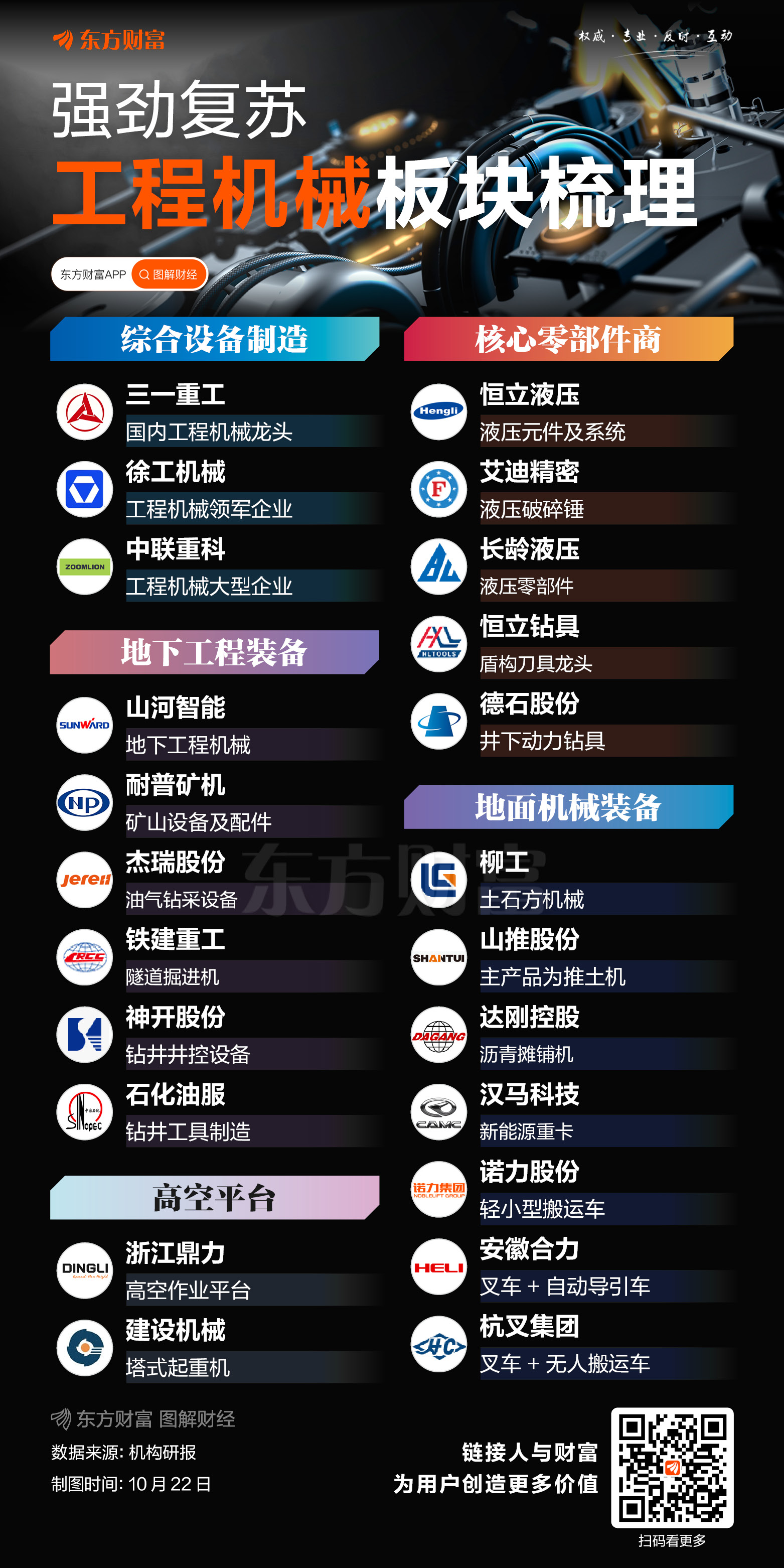 浙商证券认为,工程机械海外市占率提升,国内更新周期逐步启动。考虑到我国工程机械主机厂海外市占率提升,“一带一路”共建国家城镇化与工业化推进带来的基建和地产需求增长等因素影响,我国工程机械出口正增长趋势有望延续。国内周期筑底上行主要受益于农林、市政需求驱动小微挖需求增长,我国主机厂在矿山机械领域持续突破及水利需求带来的大挖及超大挖需求,以及国内更新需求逐步启动等因素。